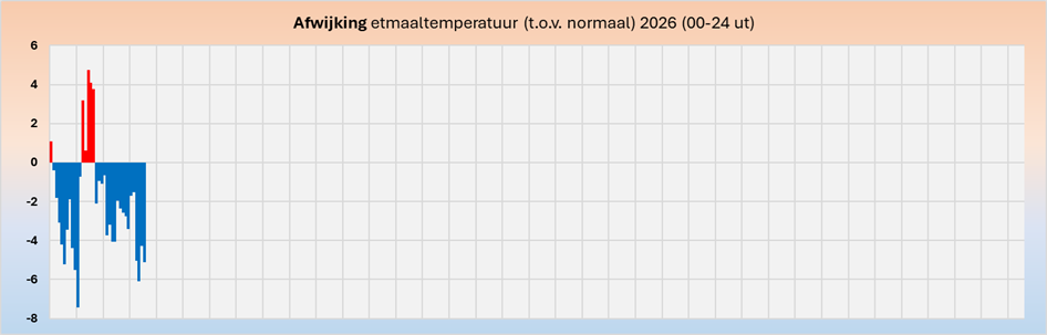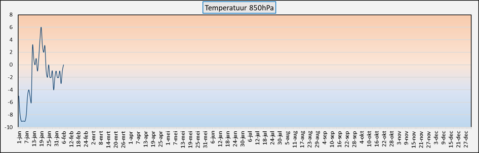 Afwijking etmaaltemperatuur ten opzichte van normaal (jaargrafiek)Temperatuur op het 850 hPa niveau (circa 1.500 meter hoogte)Dagelijkse gemiddelde etmaaltemperatuur in Sumar en De Bilt